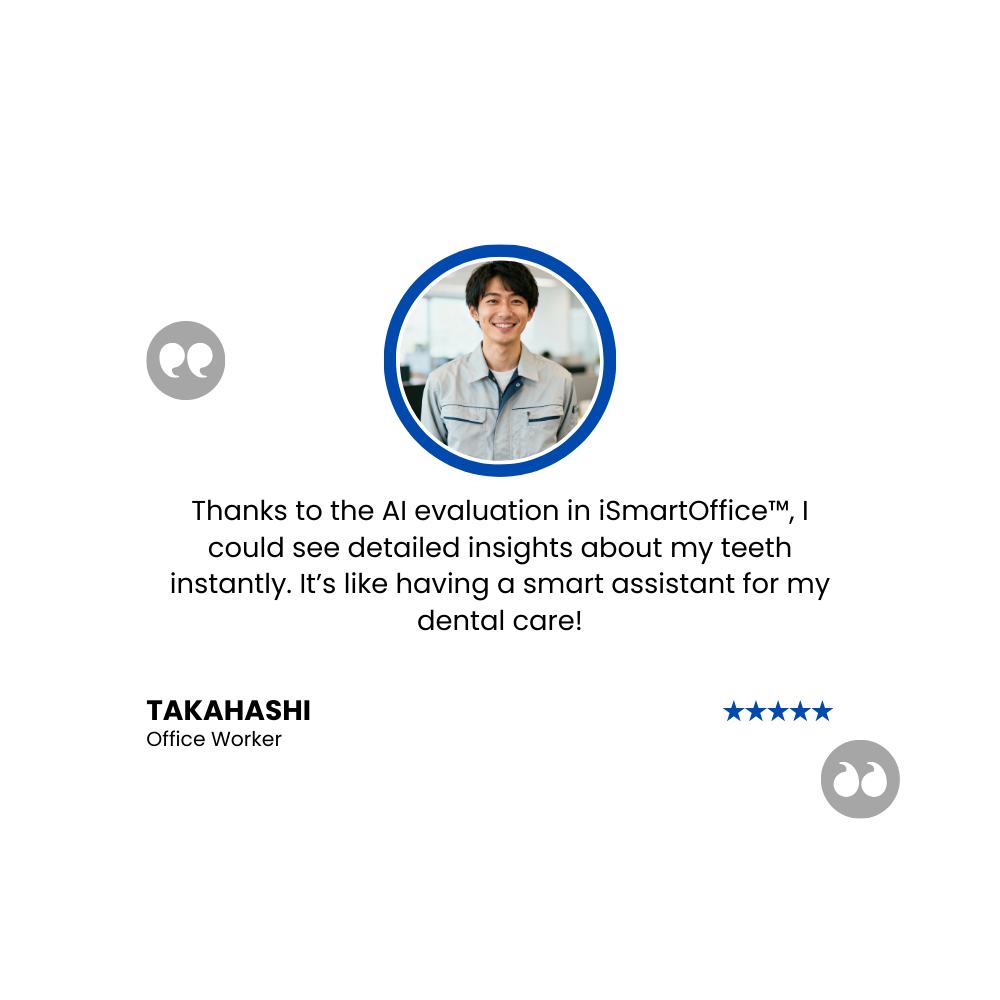 The AI evaluation engine can help to determine the various types of dental needs based on several captured images. Furthermore, it will directly transcribe its findings to appropriate dental clinics based on its insurance codes to streamline the patient’s access to oral health care.